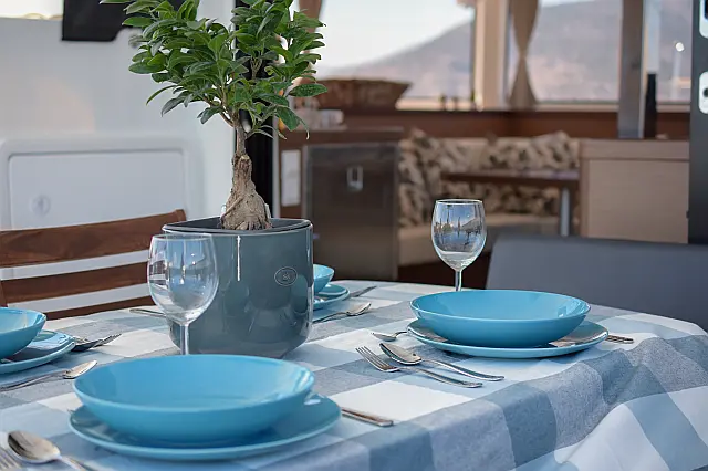 Air condition , Water maker , Electric winches , Electric toilet , Coffee maker , Solar Panels , Generator , Bimini , Cockpit cushions , Sprayhood , Cockpit speakers , Dinghy , Outboard engine , Refrigerator