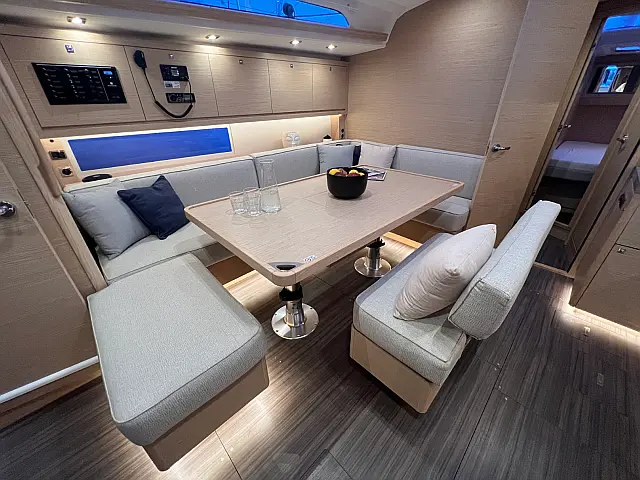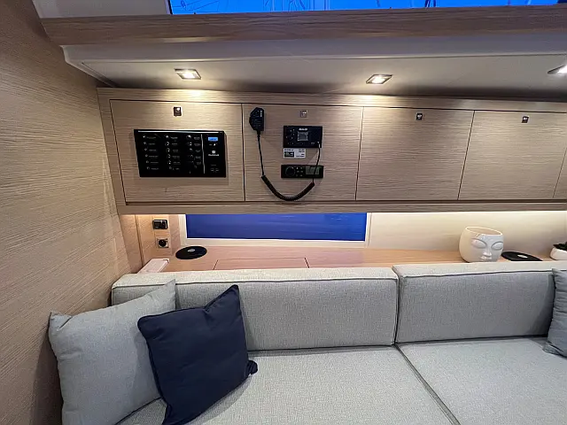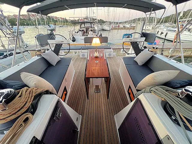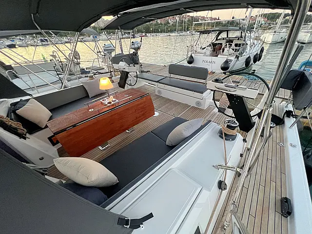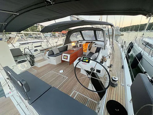 Cockpit speakers , Holding tank , Bimini , Cockpit cushions , Refrigerator , Barbecue grill in cockpit , Dinghy , Sprayhood , Teak Cockpit , Teak deck , Coffee maker , Heating , Solar Panels