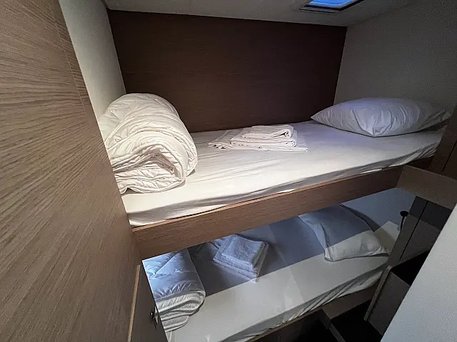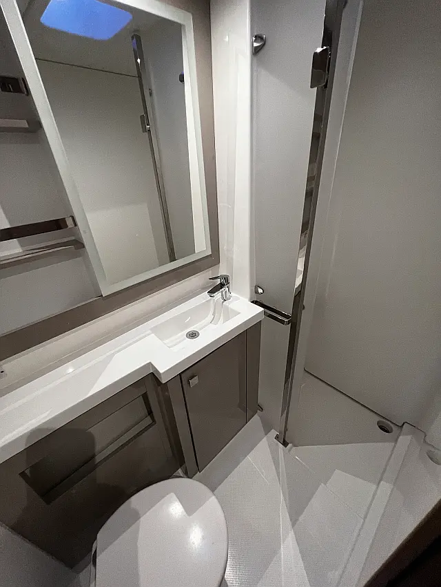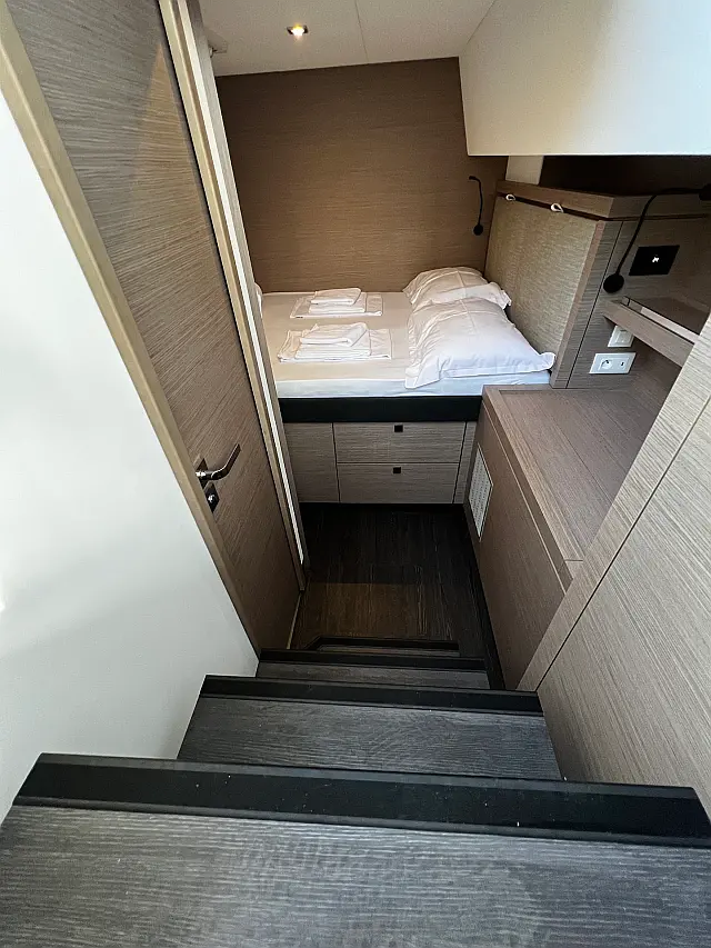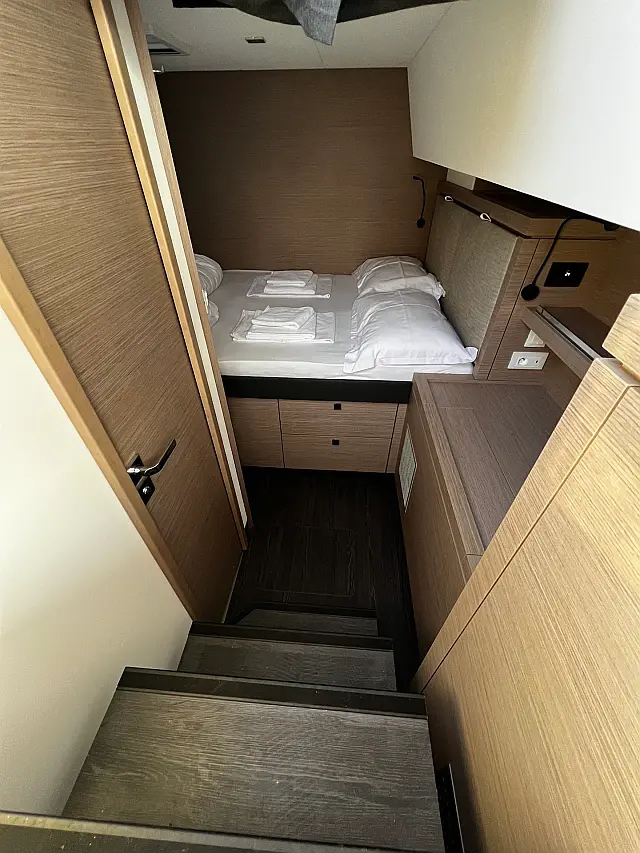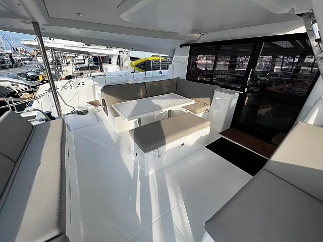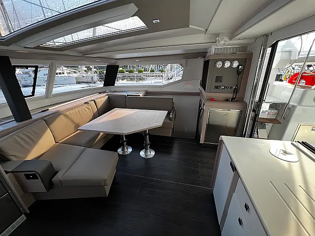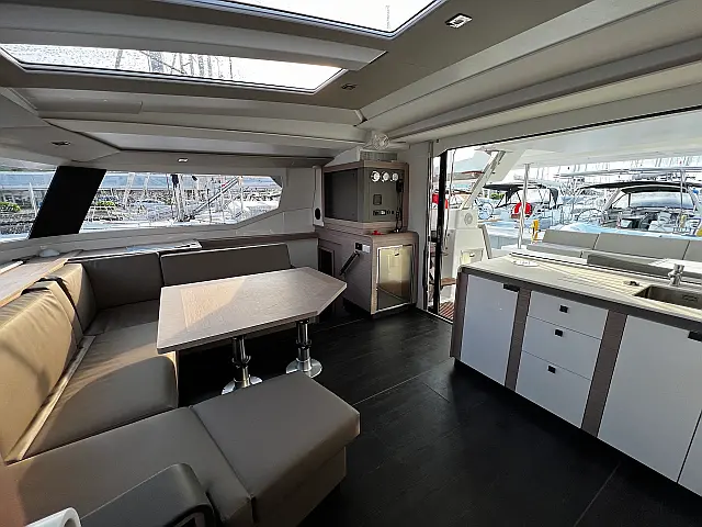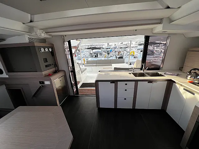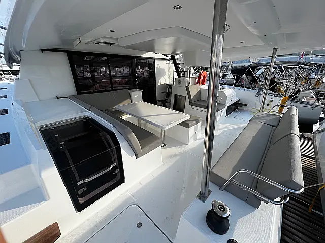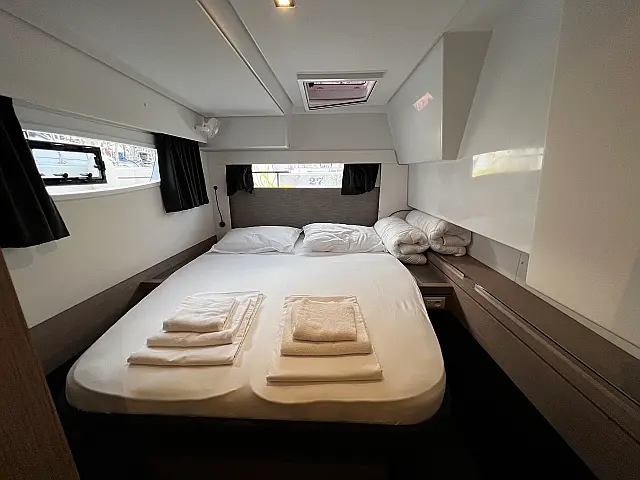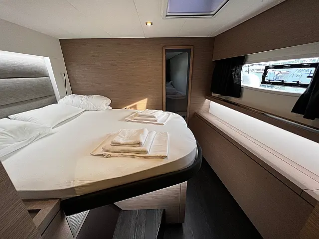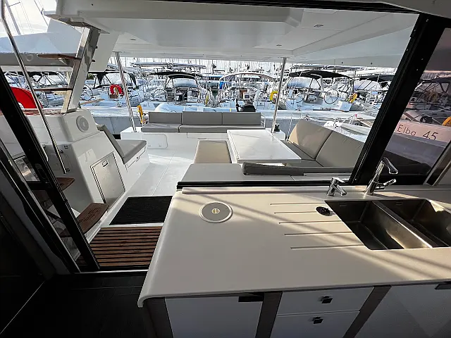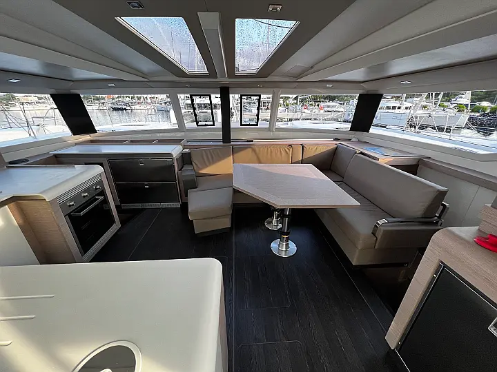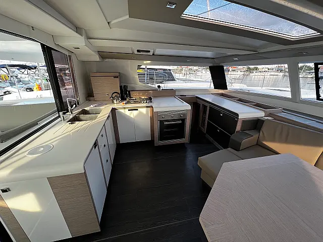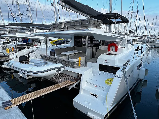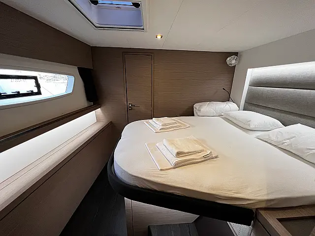 Coffee maker , Ice maker , Refrigerator , Dinghy , Wi-Fi & Internet , Water maker , Generator , Inverter , Solar Panels , Electric toilet , Air condition , Bimini , Cockpit cushions , Electric winches , Swimming platform