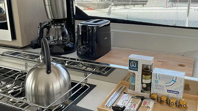 Comfort Pack Skippered Cata (Includes: End cleaning + Bed linen/Bath & Beach towels + Beds made + Wi-fi + First & final night at pier + Outboard + Petrol for outboard + Gas bottle & 1 spare) 450.00 € per booking