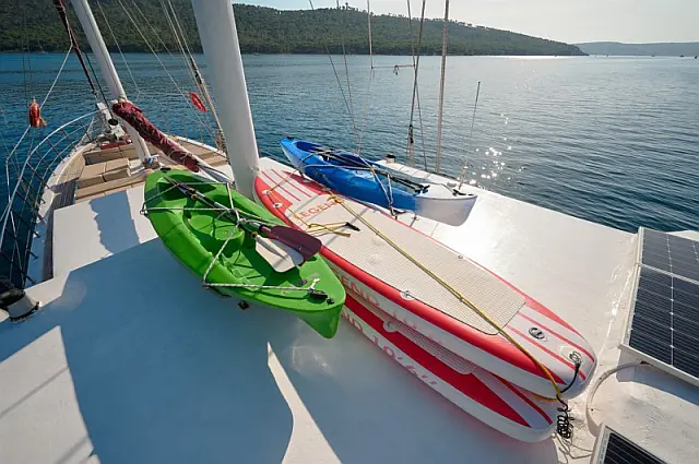 Generator , Bimini , Ice maker , Inverter , Solar Panels , Wi-Fi & Internet , Water maker , Dinghy
