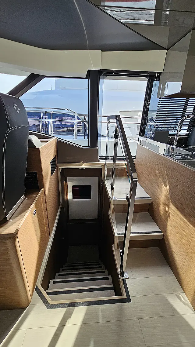 Swimming platform , Hydraulic gangway , Refrigerator , Teak Cockpit , Dinghy , Wi-Fi & Internet , Air condition , Generator , Electric toilet , Washer/Dryer , Water maker , Ice maker , Dishwasher , Coffee maker