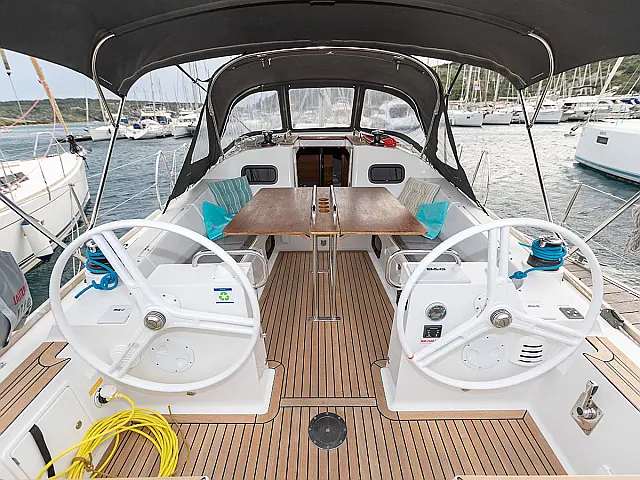Teak Cockpit , Sprayhood , Bimini , Cockpit cushions , Outboard engine , Refrigerator , Cockpit speakers , Heating , Inverter