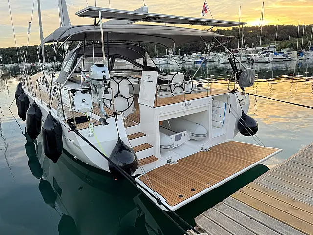 Cockpit speakers , Holding tank , Bimini , Cockpit cushions , Refrigerator , Barbecue grill in cockpit , Dinghy , Sprayhood , Teak Cockpit , Teak deck , Coffee maker , Air condition , Generator , Heating , Solar Panels