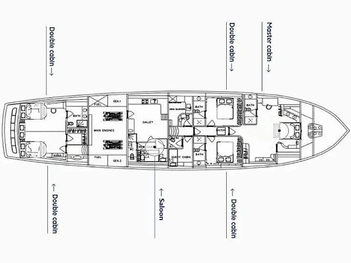 Generator , Air condition , Wi-Fi & Internet , Teak deck , Dinghy