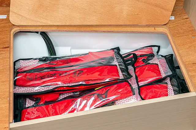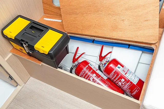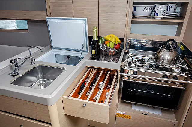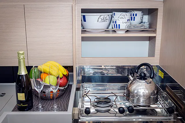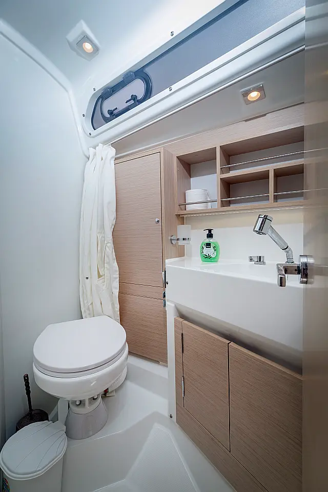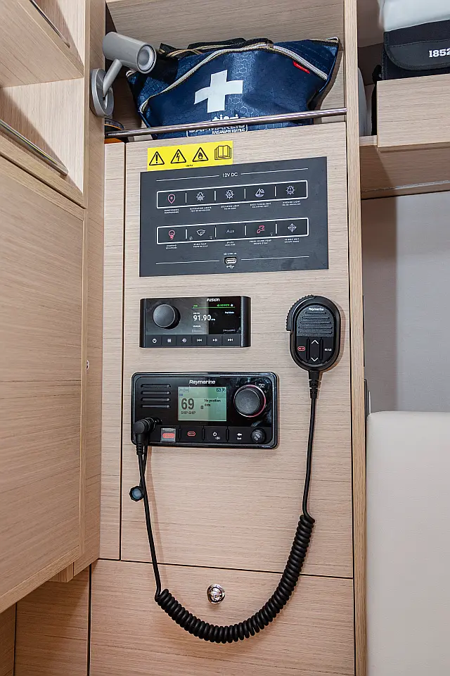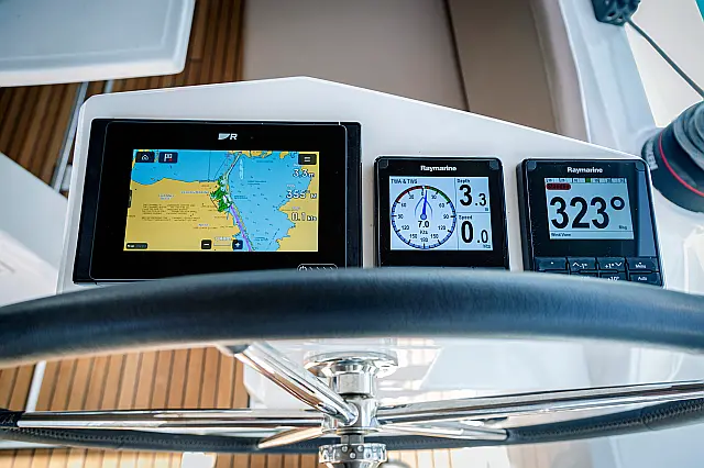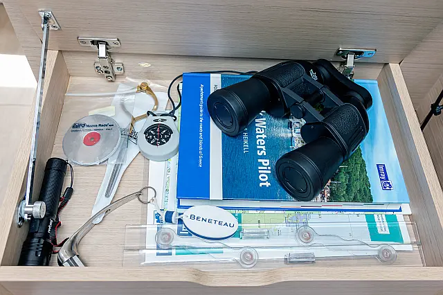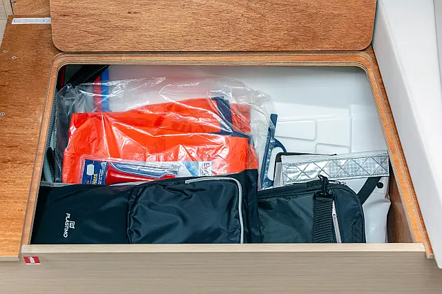 Outboard engine , Swimming platform , Electric toilet , Bimini , Cockpit speakers , Refrigerator , Sprayhood , Teak Cockpit