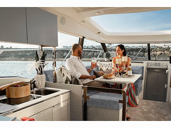 Air condition , Swimming platform , Teak deck , Refrigerator , Generator , Solar Panels , Dinghy , Cockpit speakers