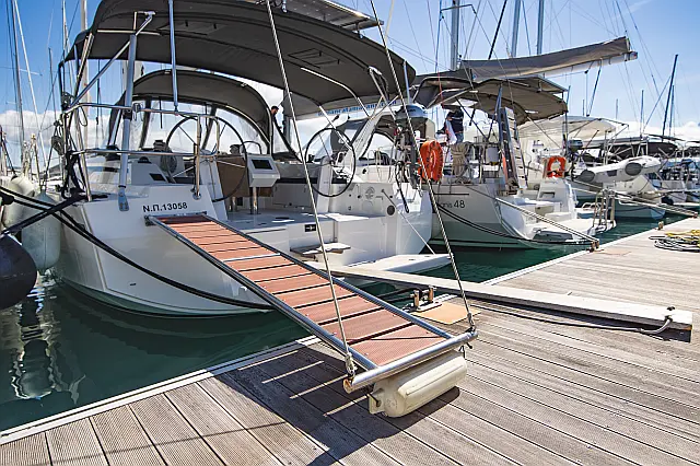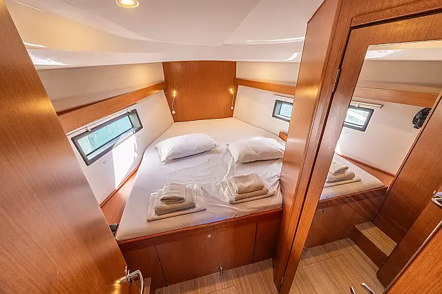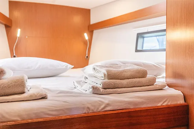 Charter package: [End Cleaning, Outboard Engine, Dinghy, 1x set of Bed Linen & Bath Towels/person, 1x bottle of local wine, sparkling water, 1 bottle of Gas local Greek nuts & marmalade, bathroom amenities, rubbish bags, welcome card. ] 250.00 € per booking