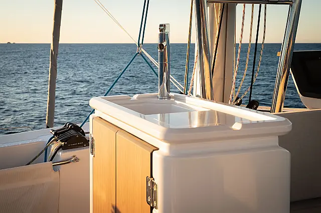 Comfort Pack 58 : 3 crew (skipper, hostess/cook, deckhand), welcome pack, 2 SUP, Wi-FI, 4 kit snorkelings, final cleaning, 1 set of bed linen in all cabins, 1 set of bath towels per guest, outboard engine, coffe machine, beach towels 6,800.00 € per booking