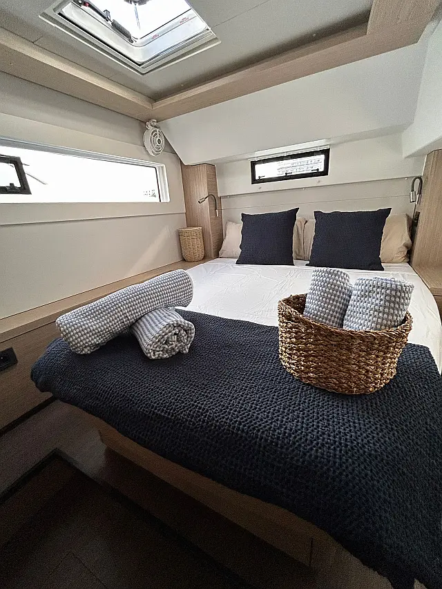 Dinghy , Outboard engine , Bimini , Refrigerator , Cockpit speakers , Electric toilet , Air condition , Generator , Coffee maker , Water maker , Electric winches