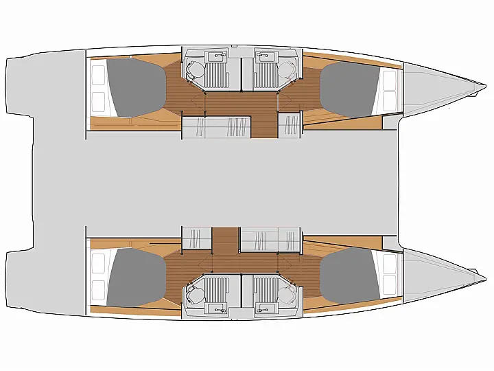 5 (4 double cabins + 1 skipper cabin + toilet + 1 convertible saloon)