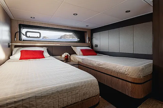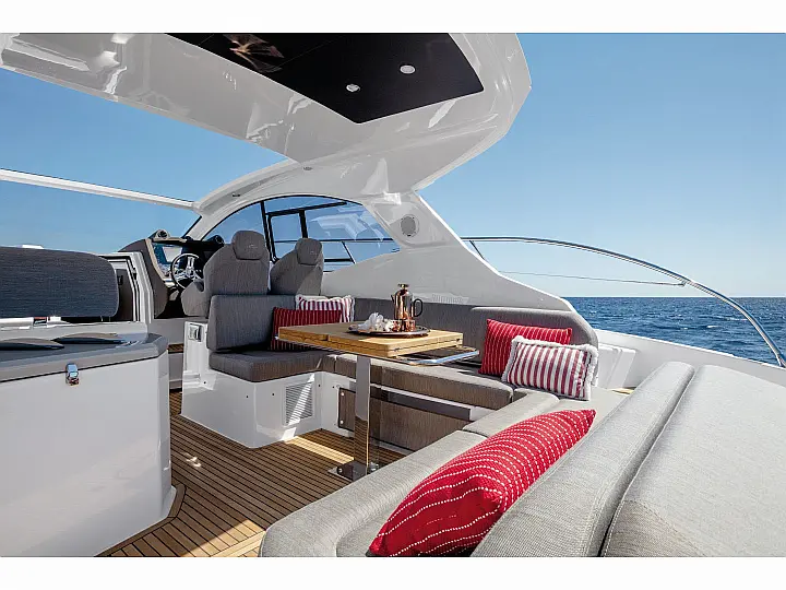 Swimming platform , Bimini , Teak Cockpit , Refrigerator , Barbecue grill in cockpit , Dinghy , Generator , Cockpit speakers