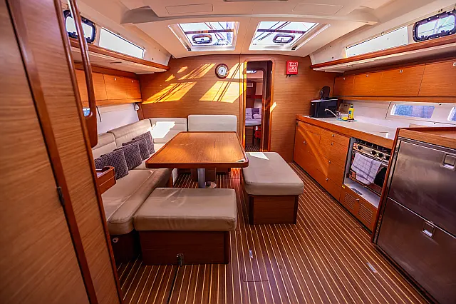 Refrigerator , Ice maker , Coffee maker , Inverter , Dinghy , Air condition , Generator , Outboard engine , Teak deck , Sprayhood , Bimini , Electric toilet