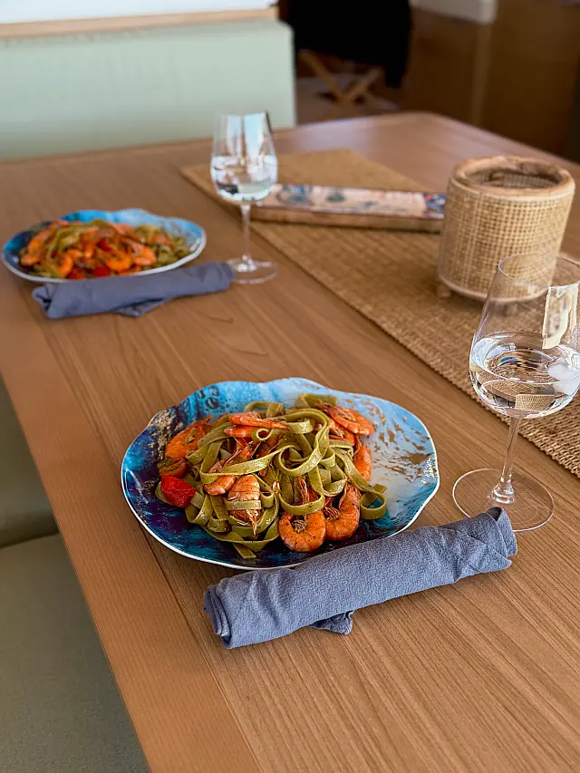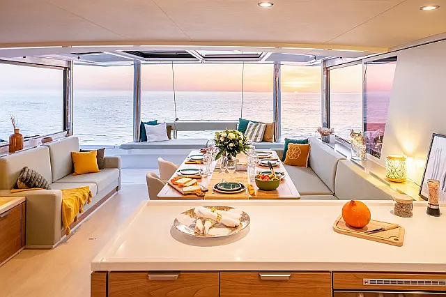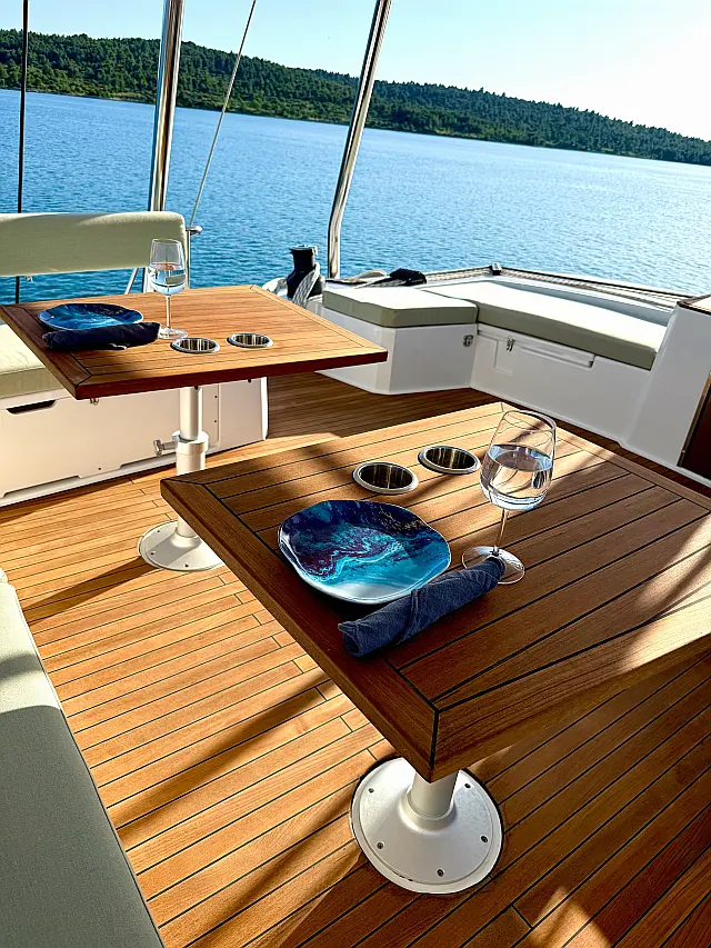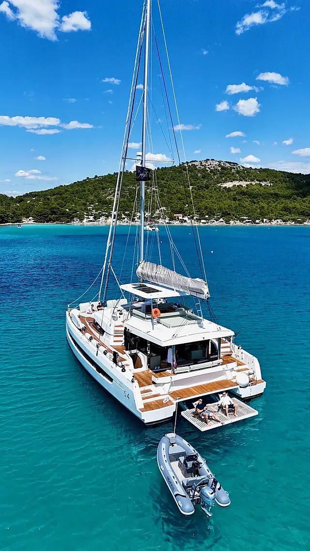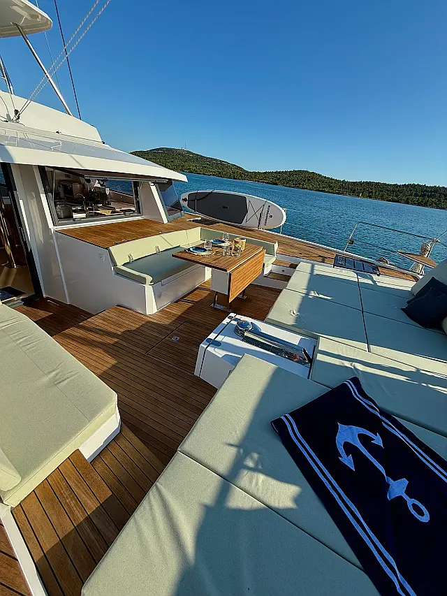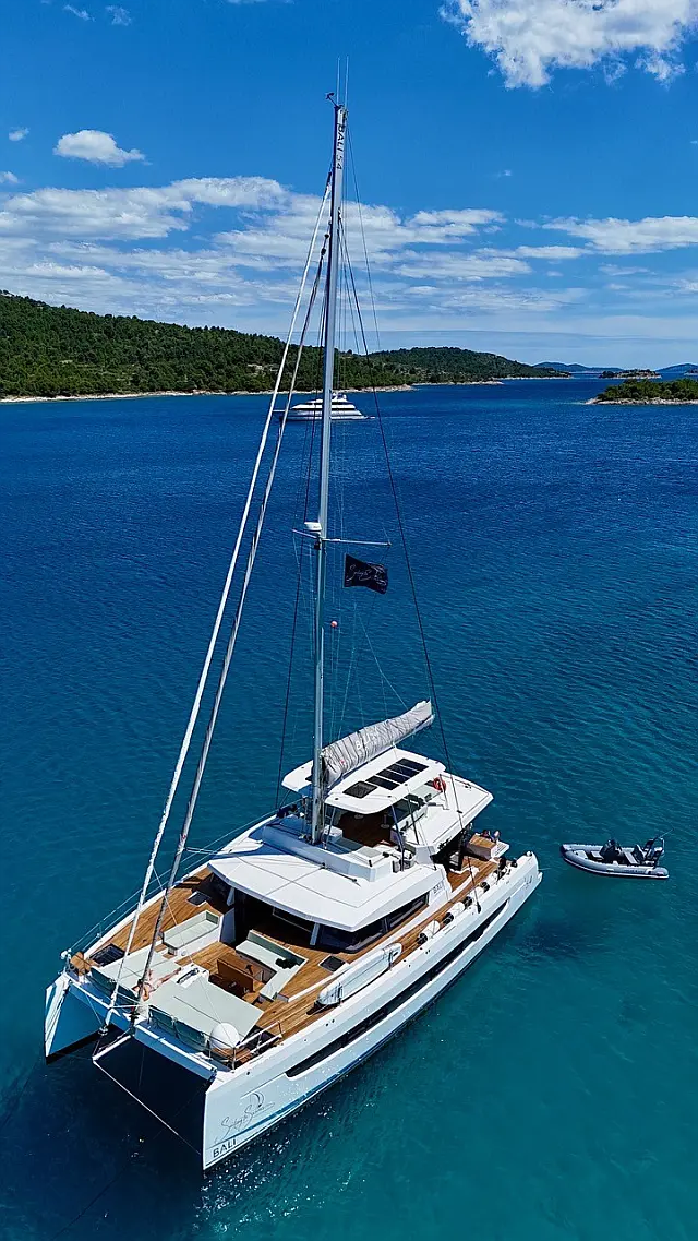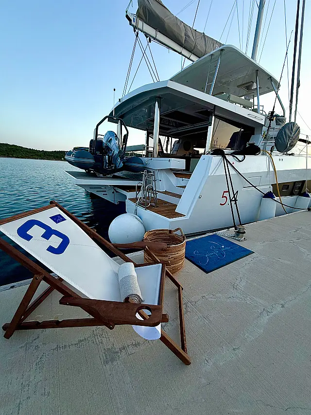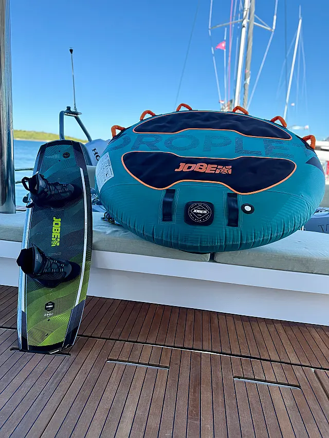 Refrigerator , Dinghy , Coffee maker , Solar Panels , Generator , Inverter , Water maker