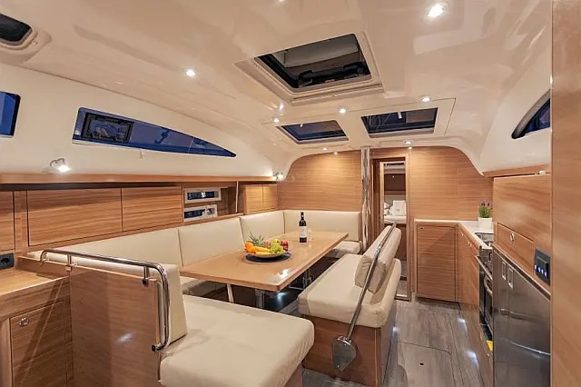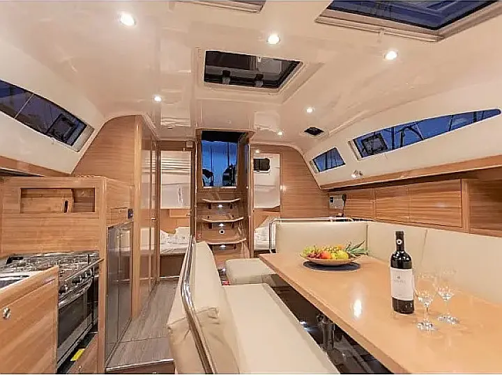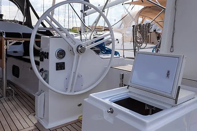 Swimming platform , Bimini , Cockpit cushions , Cockpit speakers , Refrigerator , Heating , Holding tank , Sprayhood , Teak Cockpit , Wi-Fi & Internet