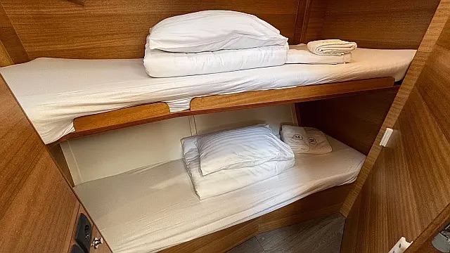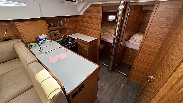 Air condition , Swimming platform , Bimini , Cockpit cushions , Cockpit speakers , Dinghy , Refrigerator , Electric toilet , Generator , Heating , Holding tank , Sprayhood , Teak Cockpit , Wi-Fi & Internet