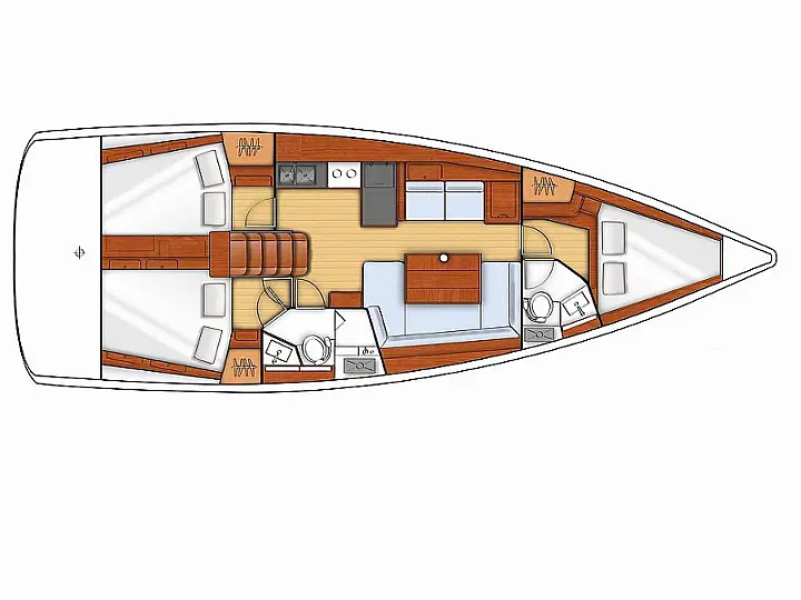 Refrigerator , Dinghy , Heating , Solar Panels , Bimini , Swimming platform , Sprayhood