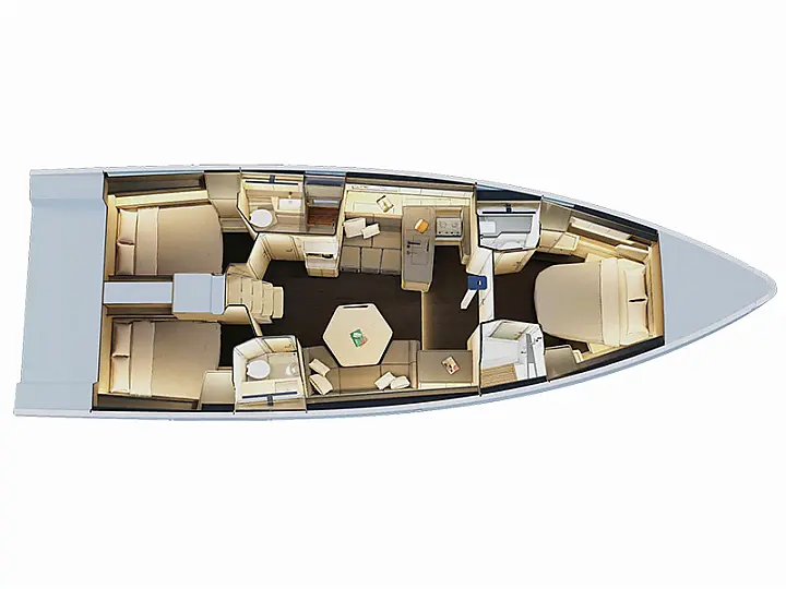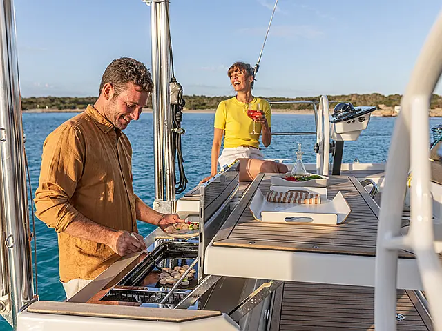 Generator , Air condition , Refrigerator , Barbecue grill in cockpit , Bimini , Cockpit cushions , Sprayhood , Outboard engine , Dinghy , Electric winches , Wi-Fi & Internet