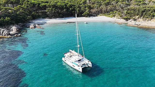Swimming platform , Water maker , Air condition , Heating , Washer/Dryer , Electric toilet , Wi-Fi & Internet , Dinghy , Outboard engine , Electric winches , Refrigerator , Coffee maker , Generator , Solar Panels , Inverter