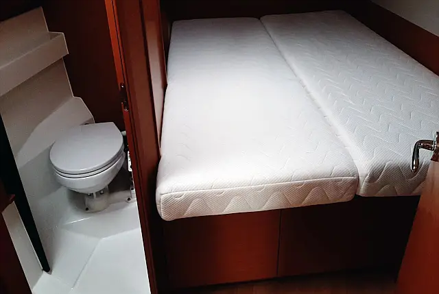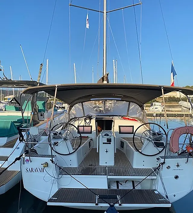 Cockpit cushions , Electric winches , Swimming platform , Bimini , Dinghy , Sprayhood , Teak Cockpit , Refrigerator , Convertible table , Electric toilet , Cockpit speakers