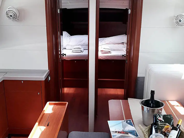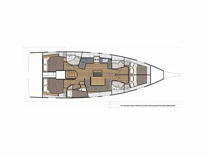 Refrigerator , Sprayhood , Teak Cockpit , Cockpit cushions , Bimini , Dinghy , Heating , Swimming platform